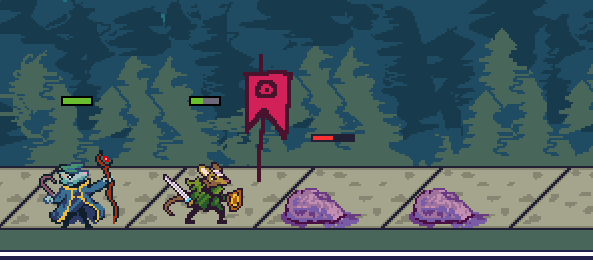 The rrats will progress forward, following the formation flag and fight automatically as they try to complete the quest objective. If you have a rrat in the same tile as your formation flag, they will use their Frontline Ability. Otherwise they will use their Backline Ability. You can change the formations of your rrats by clicking and dragging them, but you must always have a frontliner present. Once the quest is complete, return by pressing the FINISH button in the top right of the lane and collect your rewards.